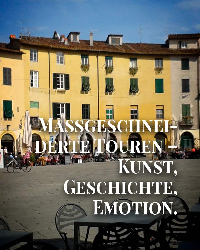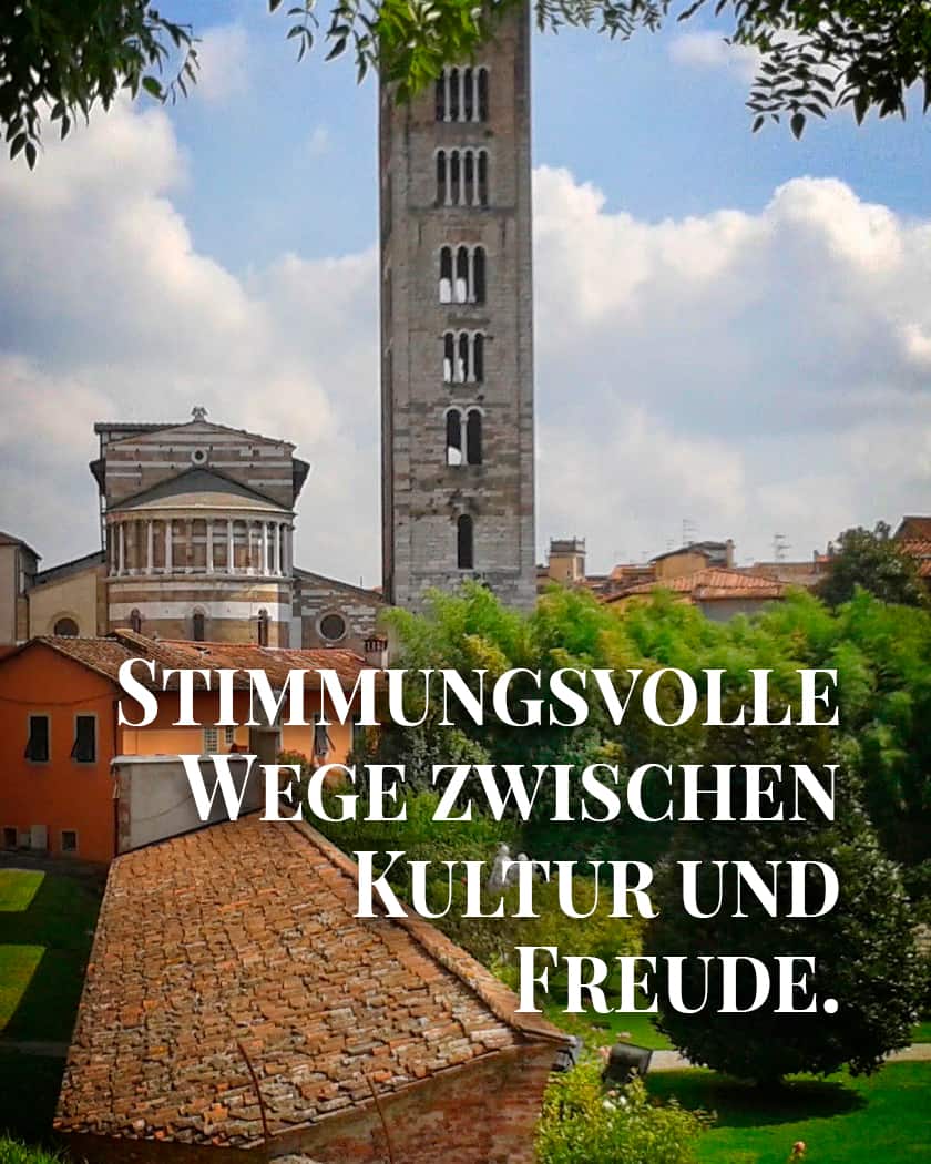 Die jahrtausendealte Geschichte von Lucca macht sie zu einer Stadt von einzigartigem Charme – wie ihre Renaissance-Mauern, die das historische Zentrum mit seinen 100 Kirchen umschließen. Einzigartig sind ihre bezaubernden Türme und mittelalterlichen Gassen. Einzigartig sind ihre Renaissancepaläste und ihre Plätze voller Geschichte, Kunst und Architektur. Eine wirklich unvergleichliche Entdeckung!