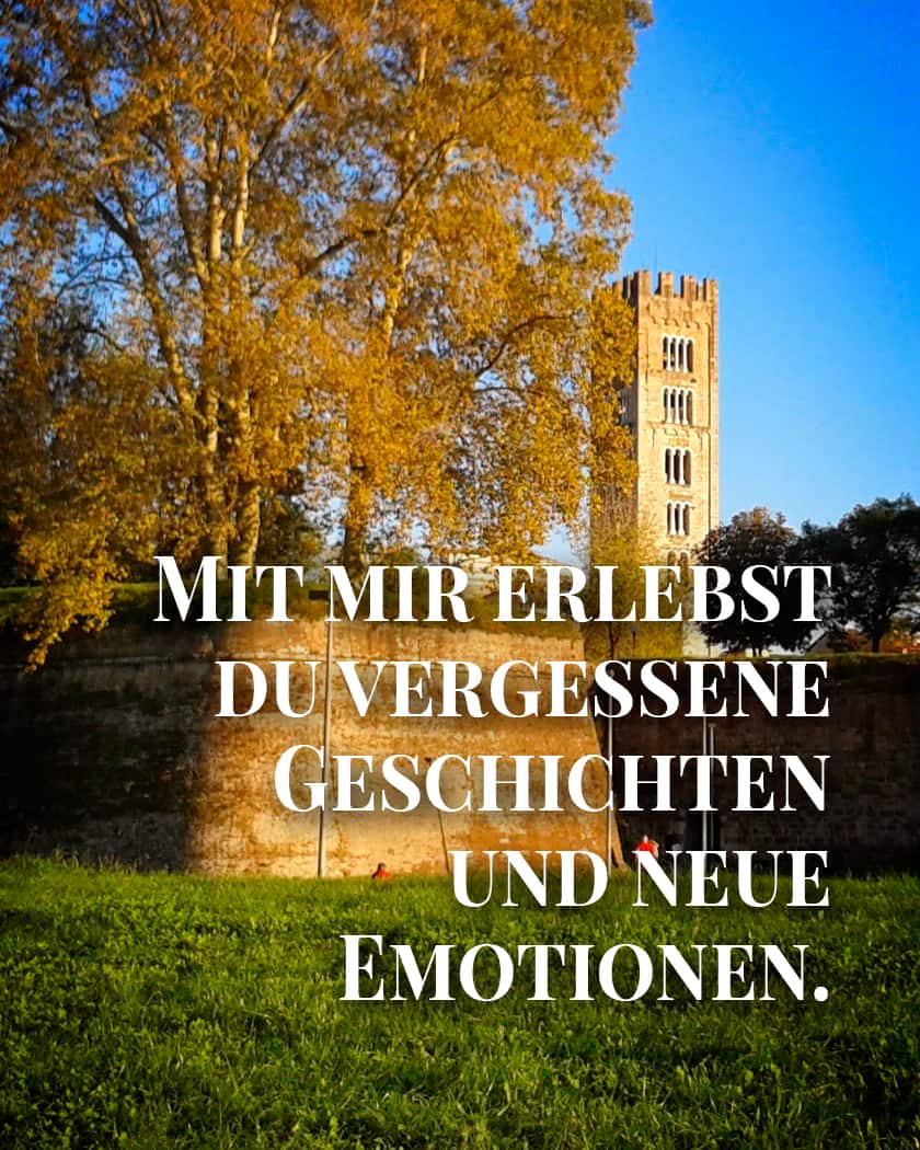Lucca und Freiburg sind die beiden Städte, in denen ich lebe: die Stadt des Herzens und die Stadt der Liebe; deshalb freue ich mich, diese wunderschönen Orte den Besuchern näherzubringen.